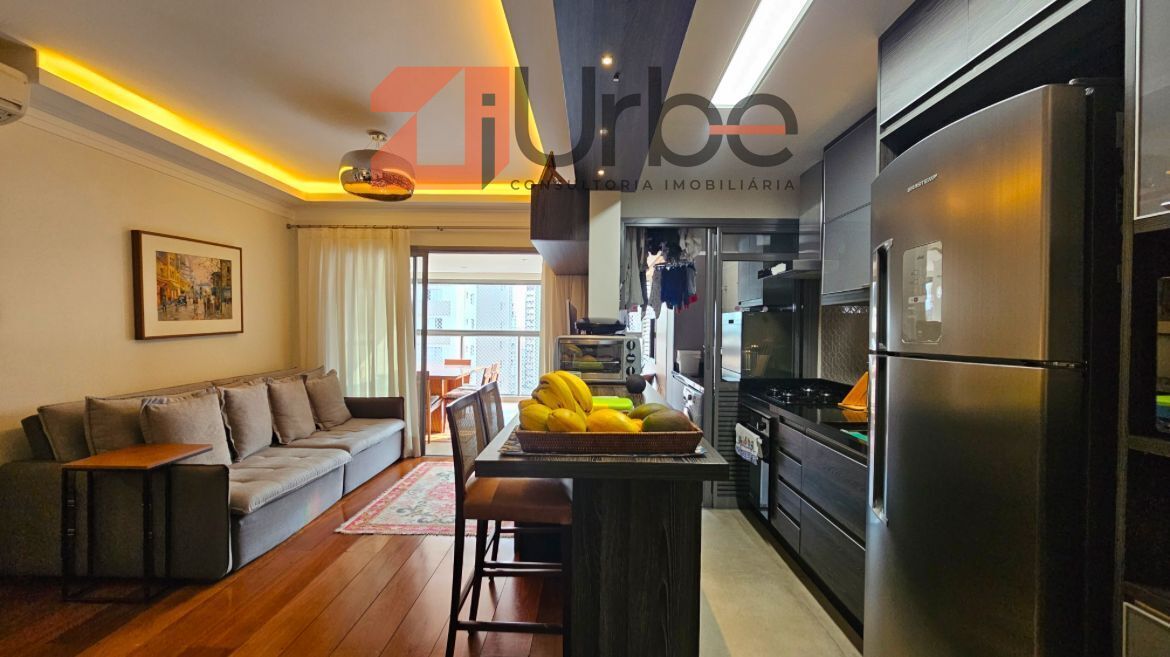 O apartamento possui 88m² muito bem distribuídos, com 2 dormitórios, sendo 1 suíte, uma espaçosa varanda gourmet perfeita para seus momentos de lazer, além de estar localizado em andar alto, oferecendo uma vista privilegiada da cidade. Os móveis planejados permanecem no imóvel, tornando a mudança mais prática e econômica. Conta ainda com 2 vagas de garagem.