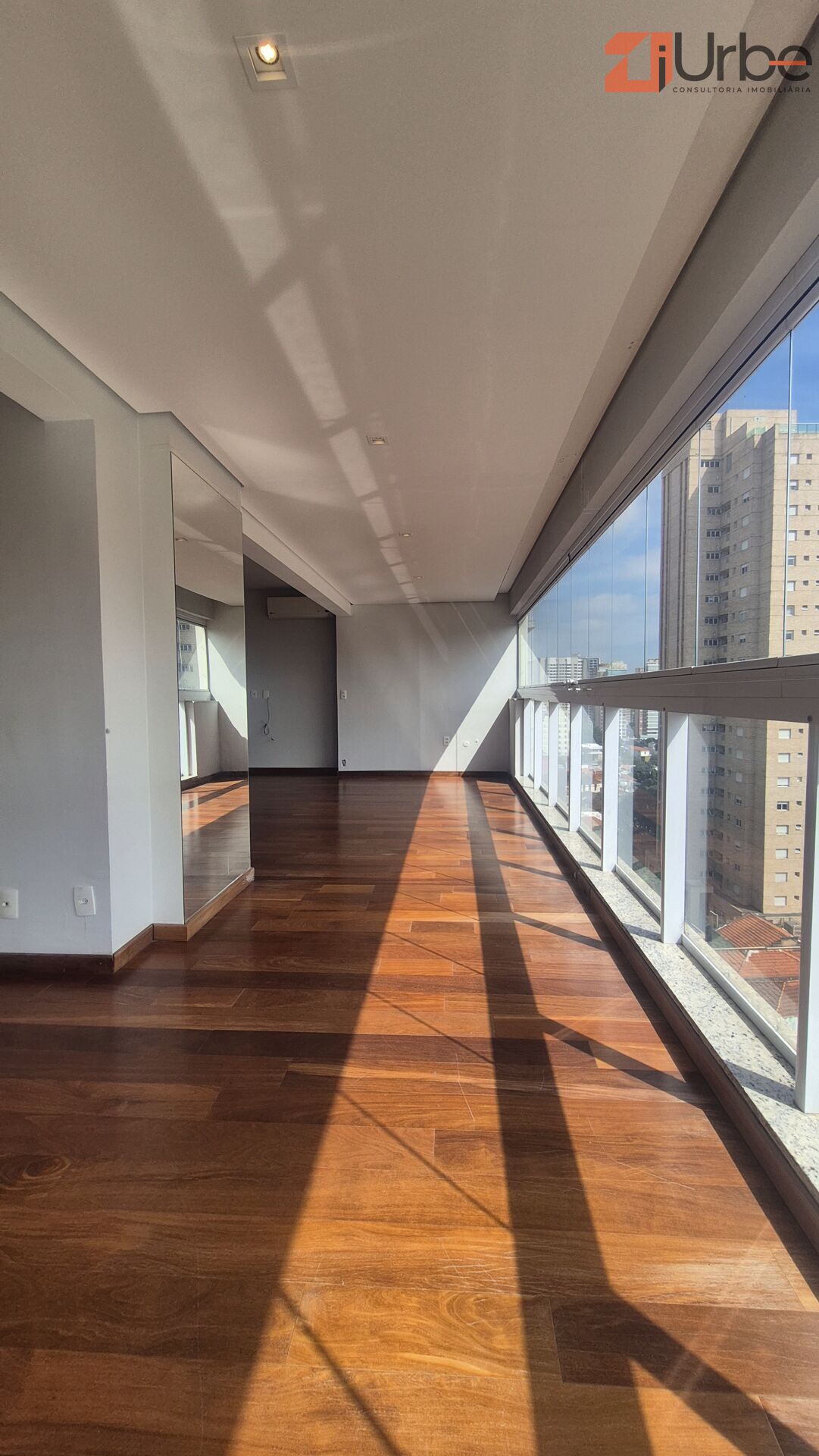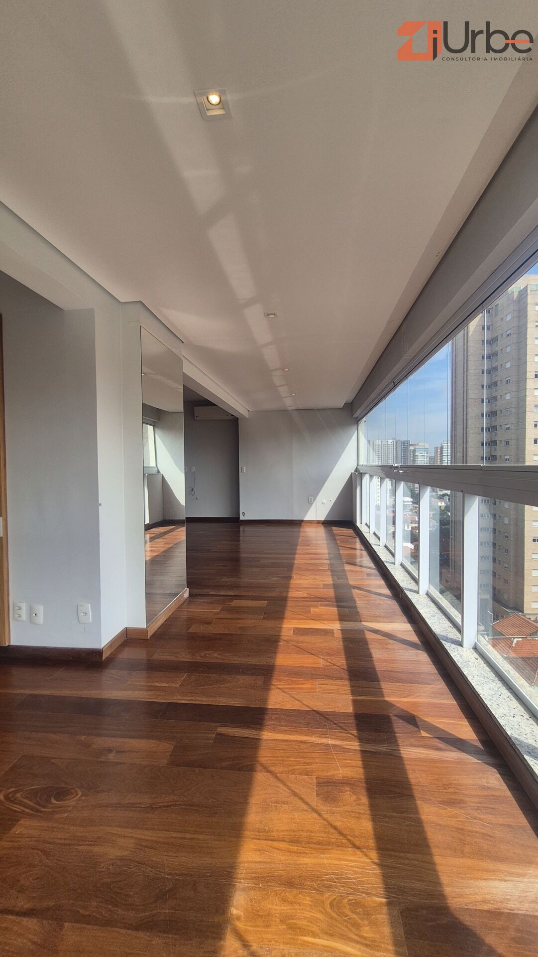 Apartamento em andar alto, com 127m² de área útil muito bem distribuídos. A sala ampla com piso em madeira conta com lavabo, ar-condicionado e integração com a varanda, garantindo luminosidade e conforto. São 2 suítes na área íntima, todas com marcenaria planejada e ar-condicionado, oferecendo praticidade e sofisticação, a 3º suíte dividi com o terraço, houve à retiradas das paredes para ampliação do living, havendo há possibilidade de reversão.