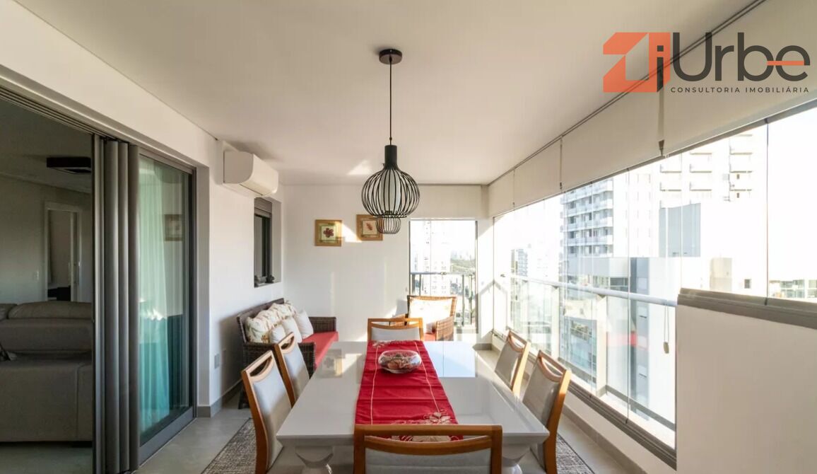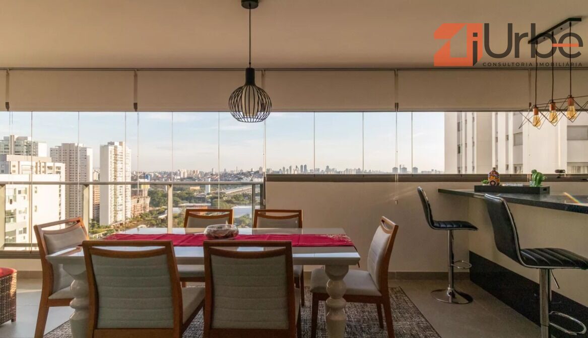 O imóvel é equipado com ar-condicionado quente e frio na sala, varanda e quartos. A cozinha em conceito aberto é totalmente planejada, com armários sob medida, fogão, coifa, forno elétrico e micro-ondas. A lavanderia conta com despensa. Todos os ambientes possuem móveis planejados de muito bom gosto. A espaçosa varanda gourmet com churrasqueira oferece uma vista livre e impressionante. São 3 vagas de garagem e 2 depósitos privativos.