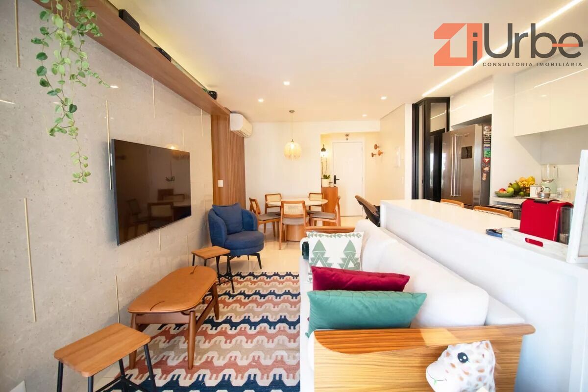 Este apartamento à venda em andar alto conta com 70m² muito bem distribuídos, com living amplo para dois ambientes, integrado a um terraço gourmet fechado com cortina de vidro, ideal para momentos de lazer e convivência. A cozinha americana planejada agrega modernidade e funcionalidade ao espaço. O imóvel dispõe de lavabo, dois dormitórios (sendo uma suíte), banheiro social e área de serviço. Além disso, possui ar-condicionado na sala e nos dormitórios, garantindo conforto em todas as estações. Conta ainda com 1 vaga de garagem.