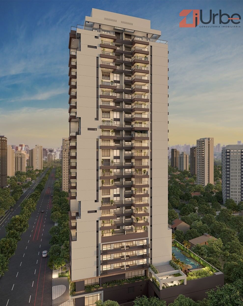 O projeto conta com uma única torre em um terreno de 1.566 m², distribuída em térreo + 28 andares, com um total de 168 residências. Os apartamentos variam de 50 a 125 m², com opções de 1 a 3 quartos, 1 a 3 banheiros e até 1 vaga de garagem. Pensado para atender desde singles e casais jovens até famílias, o empreendimento apresenta plantas versáteis e bem distribuídas.
