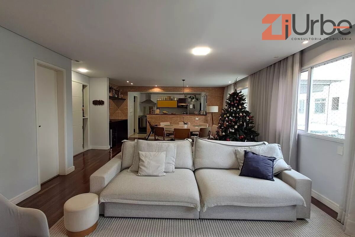 Com 135 m² de área privativa, este apartamento de alto padrão foi totalmente reformado e apresenta acabamentos modernos e sofisticados. Possui uma ampla sala para dois ambientes, com excelente iluminação natural e living ampliado, proporcionando ainda mais conforto. São 3 suítes espaçosas com armários planejados, além de lavabo elegante, cozinha funcional com marcenaria completa e ar-condicionado em todos os ambientes. A varanda gourmet com churrasqueira a carvão é um grande destaque, perfeita para momentos de convivência. O imóvel conta ainda com 2 vagas de garagem.